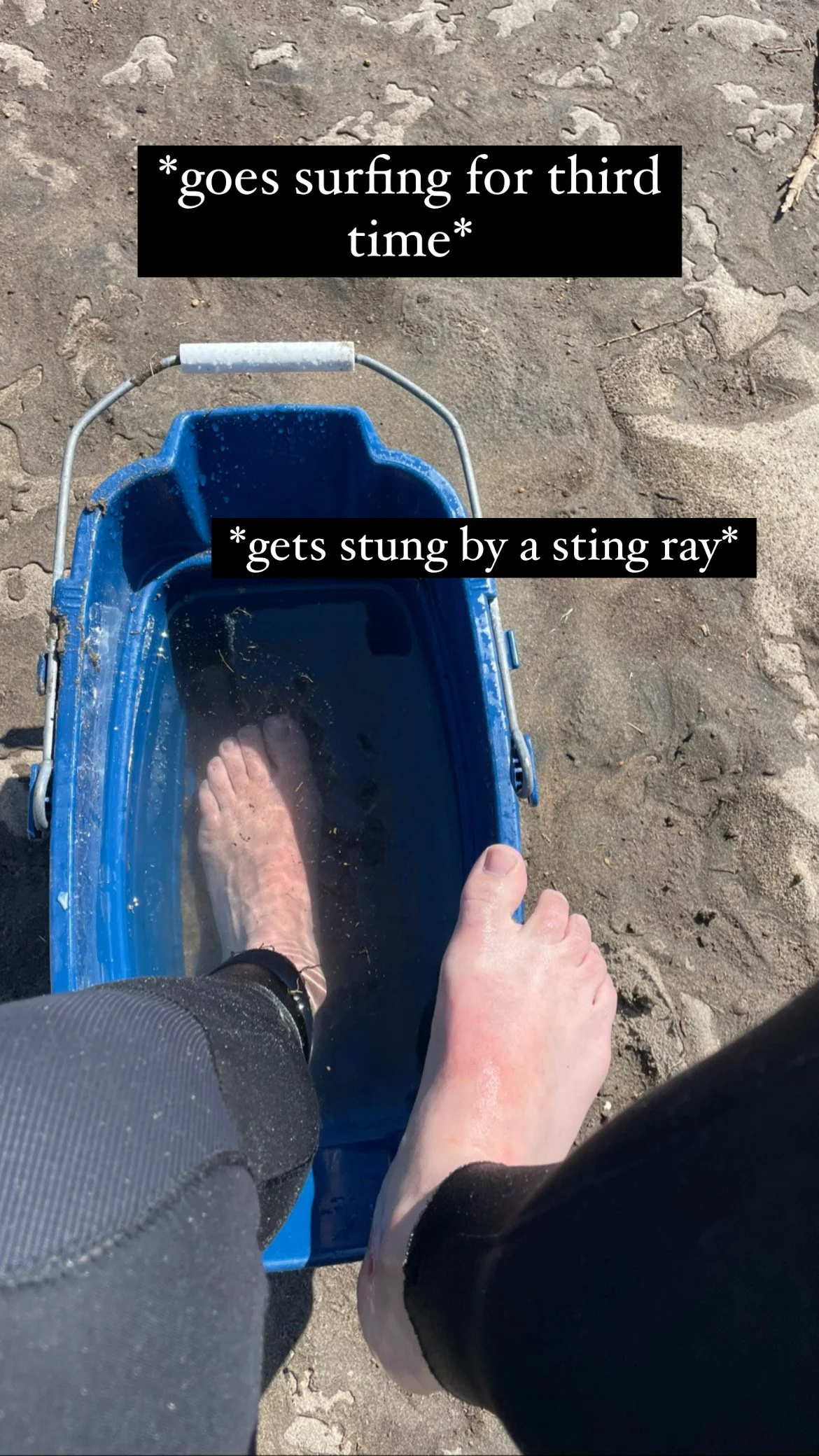 While hanging out with Bumble boy, I tried surfing for the first time. And the second time. I was absolutely terrified to go myself, and yet I didn't want to limit myself from engaging in something I was learning to enjoy just because he was not around. So I went by myself! This was a breakthrough experience for me and my confidence ... and I ended up getting stung by a sting ray. It was incredibly painful, but I regret nothing. The fact that I put myself out there was what mattered.