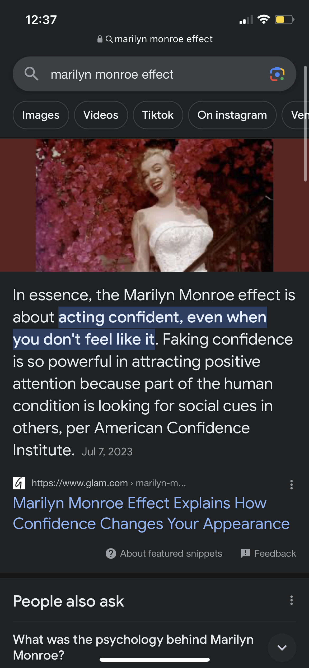 I had just learned about the Marilyn Monroe effect, so when I walked down the street and told myself to "act like a confident person," this was where I got the idea from!